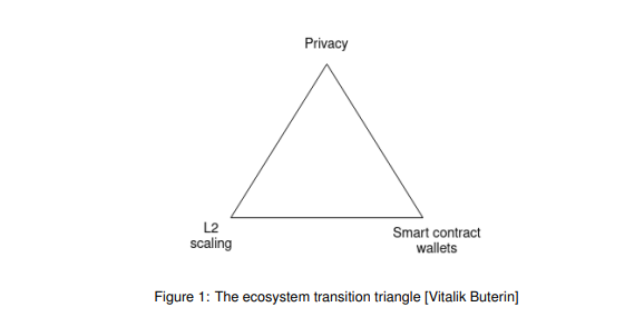 The identified transformations include the layer-two (L2) scaling transformation, where everyone will move to rolups, the wallet security transformation, where everyone will move to smart contract wallets, and the privacy transformation, where developers ensure that “privacy-preserving fund transfers are available” and that other services being developed (such as social recovery) are also privacy-preserving.